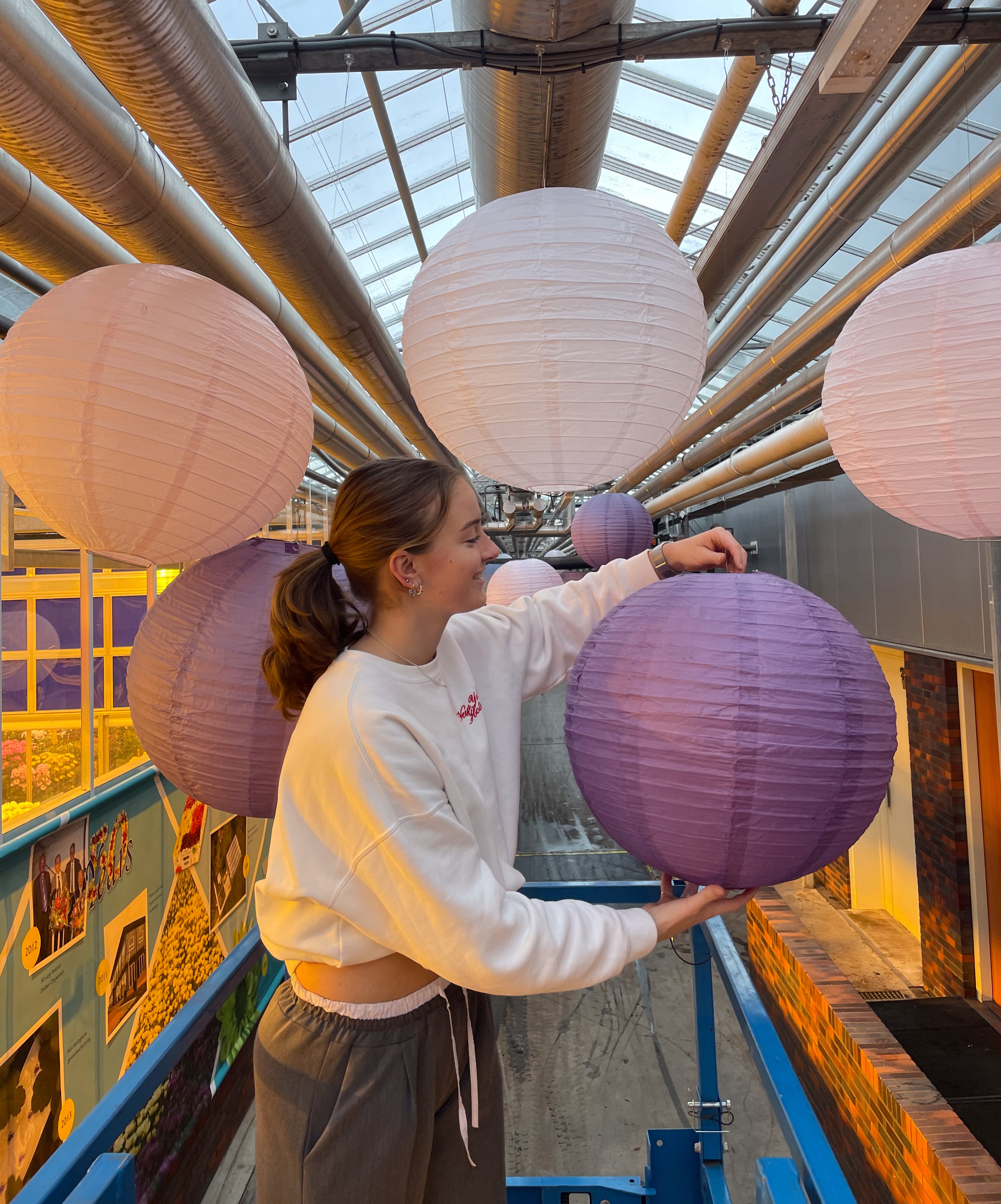 Op de marketingafdeling ontdekte ze weer een heel andere kant van het vak. “Bij marketing ging ik ook langs klanten, maar dan met het doel om beeldmateriaal te verzamelen en de kwekers via bijvoorbeeld ‘Teler in beeld’ een gezicht te geven achter onze chrysanten. Soms werkte ik achter de computer, bijvoorbeeld voor het maken van een magazine, en de andere dag stond ik op een hoogwerker lampionnen op te hangen voor een opendag. Geen week was hetzelfde, en juist die afwisseling maakte het zo leuk.”