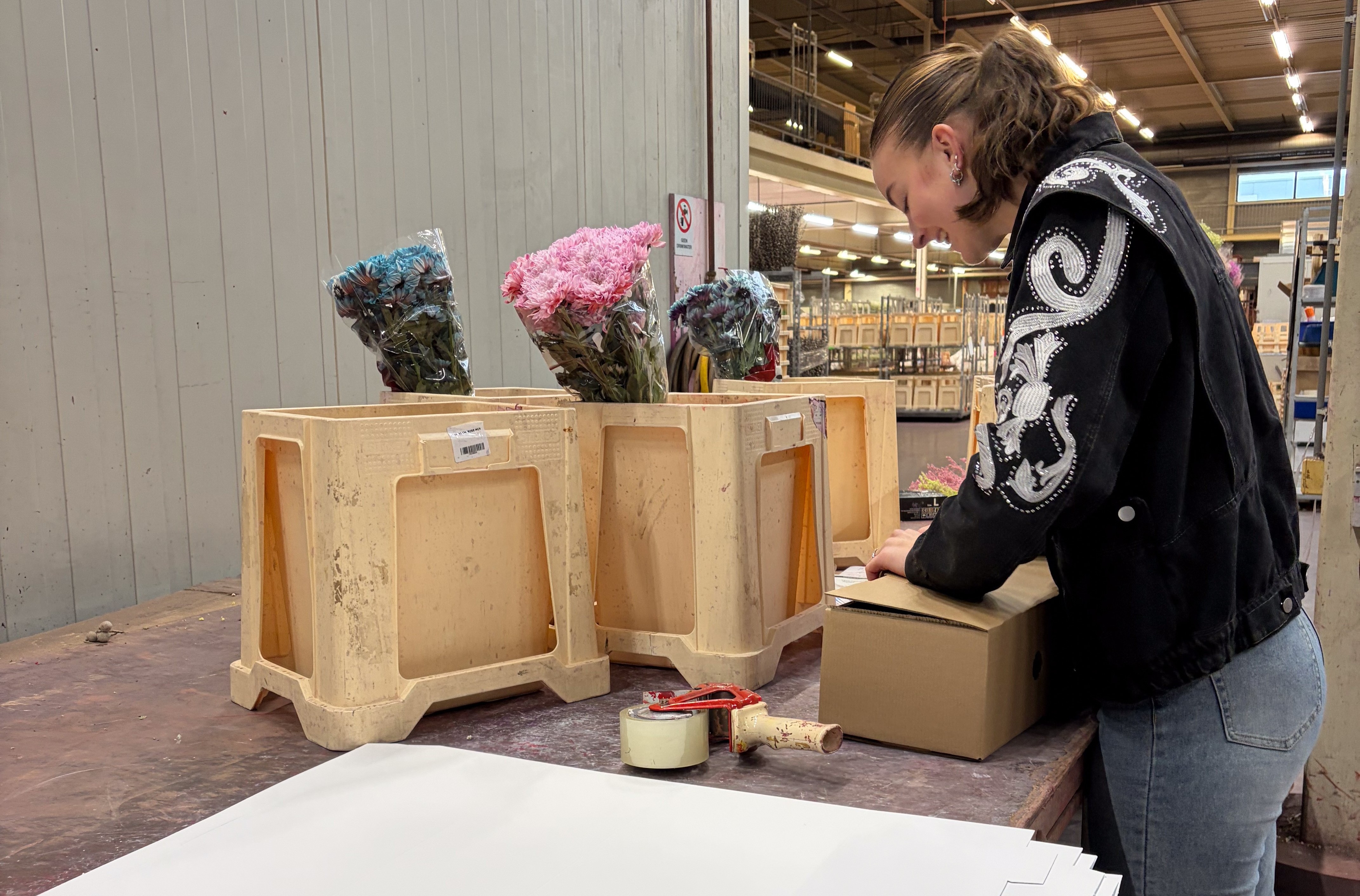 Roos vond het ook fijn dat ze veel vrijheid kreeg om zelf dingen op te pakken. “Zo zijn we voor het format ‘Trade Talk’ langs een bedrijf geweest dat gespecialiseerd is in het verven van bloemen, en later mocht ik zelf sampleboxen met geverfde chrysanten versturen en alles regelen. Bij Dekker krijg je echt de ruimte om zelf mee te denken en dingen uit te proberen.” Wat haar vooral aansprak, was onderweg zijn. “Ik mocht mee naar telers, bloemisten en de handel, en dat vond ik super leuk.”